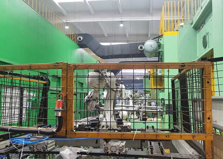 在現有滑軌系統上加裝機器人移動滑臺,集成動力電纜、氣路及信號線纜的拖鏈保護系統。